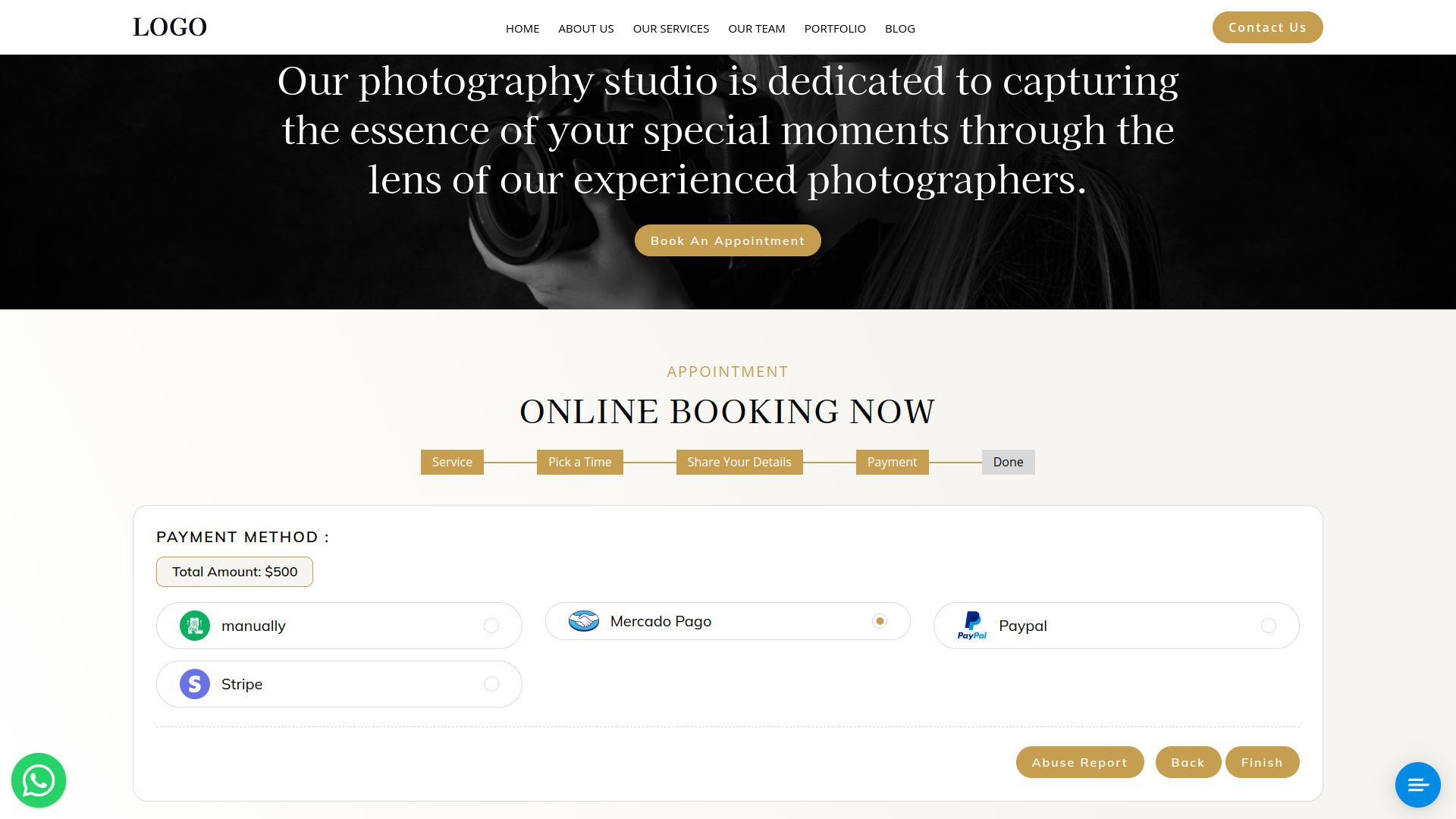 Mercado Pago is an online payment platform that allows appointment users to receive and process payments quickly and securely. Once you share the appointment link with your customer, they can make payments through multiple payment modes such as debit/credit cards, cash, and red link transfers.